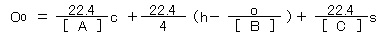 「液体燃料の理論酸素量Oo(m3N/kg燃料)は、燃料1kgに含まれる炭素、水素、酸素及び硫黄の量をそれぞれc、h、o及びs(kg)とすれば、次式で表わすことができる。