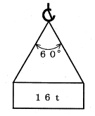 | 平成26年後期-問39 | 図のように、質量16tの荷を2本の玉掛け用ワイヤロープ用いてつり角度60°でつるとき、1本のワイヤロープにかかる張力の値に最も近いものは1~5のうちどれか。 ただし、重力の加速度は9.8m/s2とし、ワイヤロープの質量は考えないものとする。 |