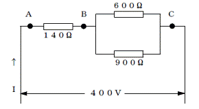 BC間の合成抵抗={1/(1/900+1/600)}=360Ω