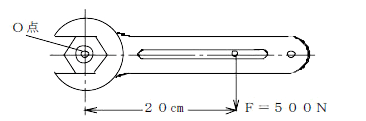 図のようにスパナでナットを締め付ける場合にO点を回転の軸とするモーメントとして、正しいものはどれか。