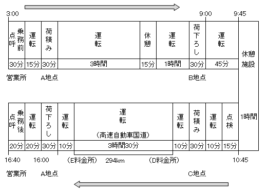 運行管理者は、荷主からの運送依頼を受けて、次のとおり運行の計画を立てた。 |